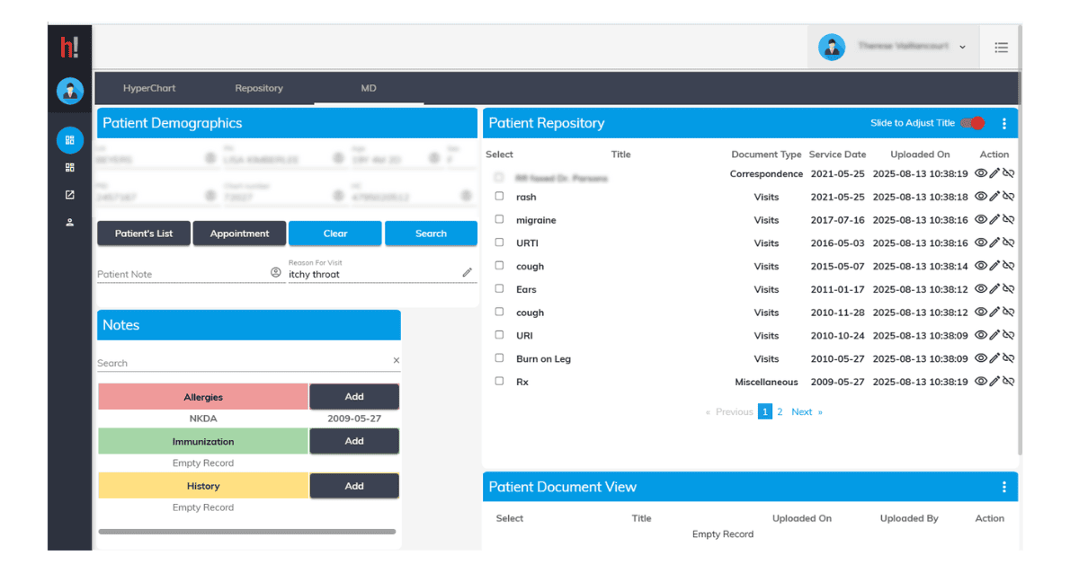 Doctors don’t need billing clutter. Clerks don’t need clinical notes. HyperChart customizes each user’s view to their role and security level, reducing screen fatigue and preventing errors. Everyone sees what matters to them—nothing more.